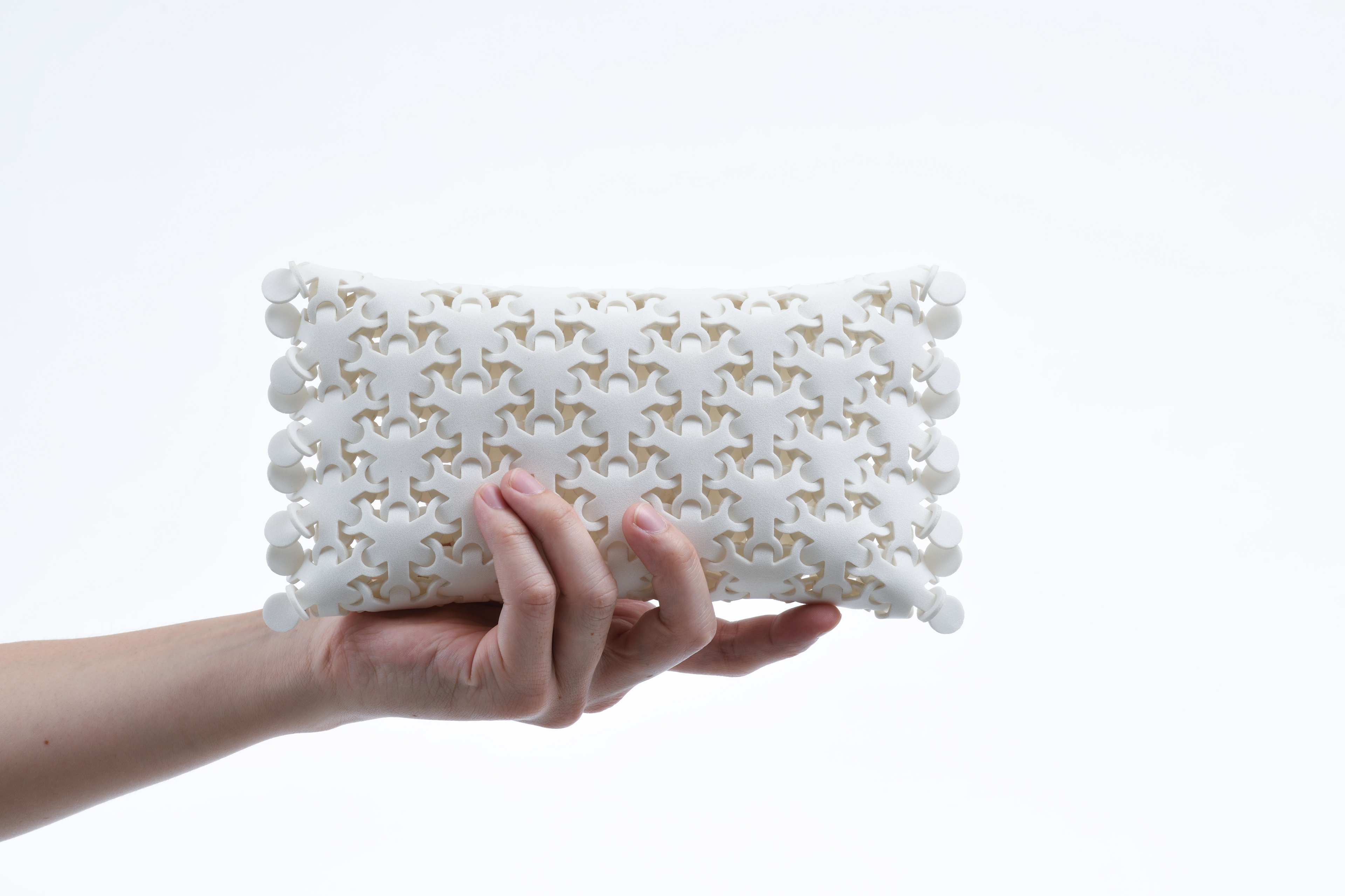 素材はスポンジ状の素材で形成されており、組んで重ねることで、内側に高いクッション性が生まれます。